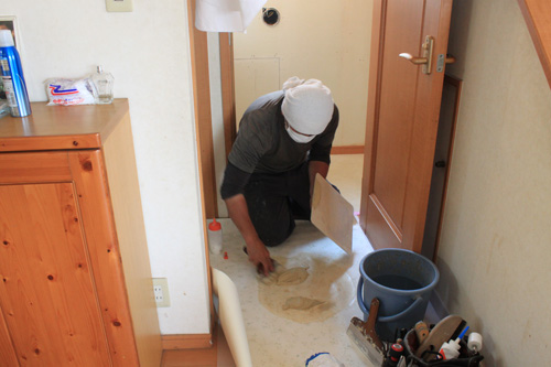 新しい床材を貼ります。